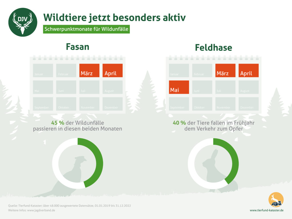 Die meisten Wildunfälle ereignen sich in den Monaten April und Mai