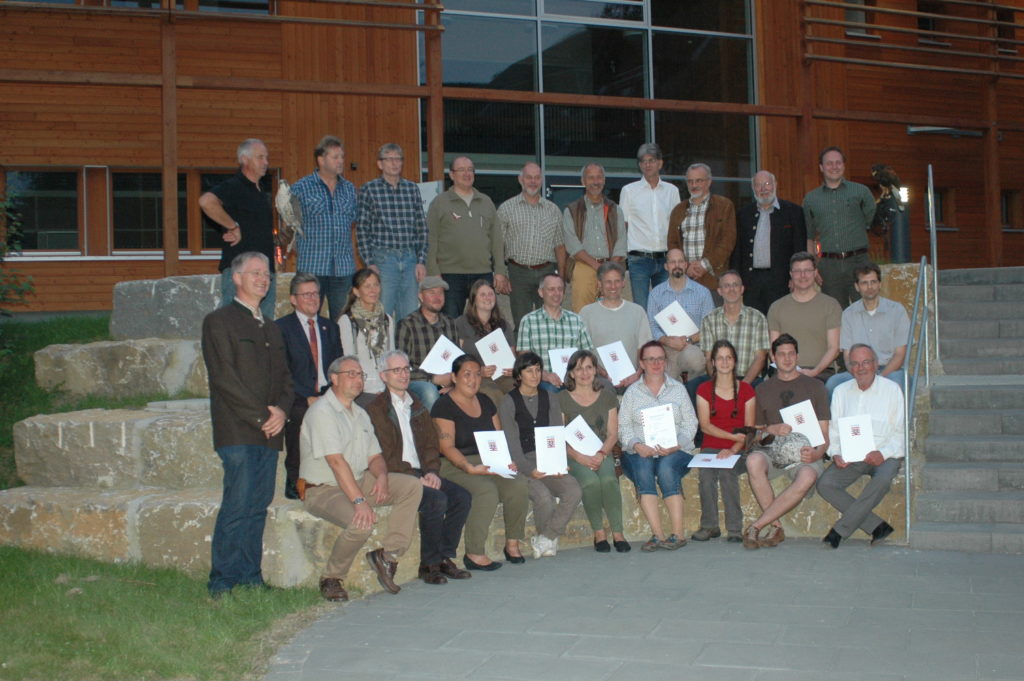 Die Kandidaten der ersten Falknerprüfung in Hessen mit einigen der Prüfer und Ausbilder. Foto: Dr. Andreas Böttig