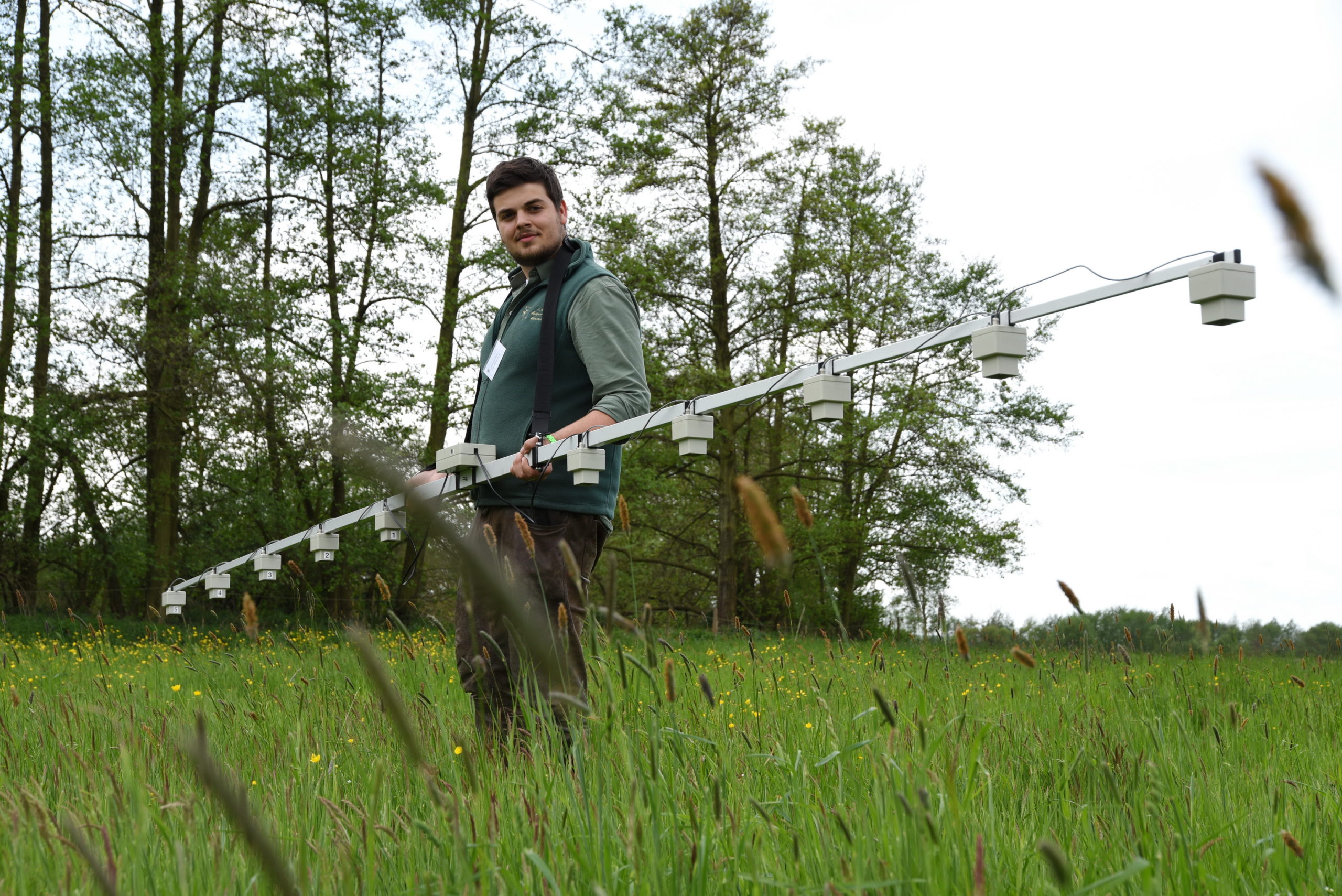 Mit dem Infrarotbalken können Hasen, Rehkitze aber auch bodenbrütende Vögel vor der Mahd aufgespürt werden. Foto: Markus Stifter