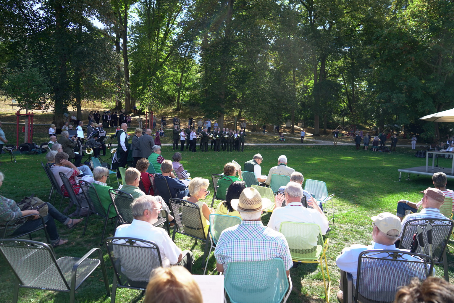 Schon am Eingang der Landesgartenschau waren die Jagdhornklänge zu hören. Die Besucher waren sehr beeindruckt vom Hörnerklang und haben rund um die Aktionswiese teilweise auf dem Boden Platz genommen, um die jagdliche Musik zu genießen. Neben klassischen Jagdsignalen wie „Begrüßung zur Jagd“, „Damwild tot“ und „Wisent tot“, wurden auch bekannte Stücke wie „Auf zum fröhlichen Jagen“ und „Der Jäger aus Kurpfalz“ präsentiert.