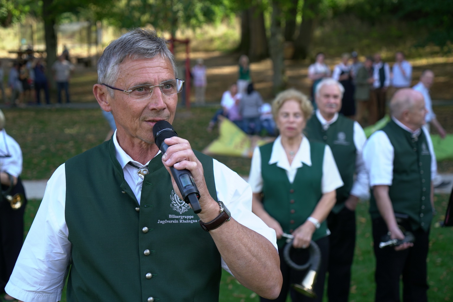 Wie der Landrat des Rheingau-Taunus-Kreises, Frank Killian, in seinem Vorwort erläuterte, sei es für jüngeren Generationen kaum vorstellbar ohne Funkgeräte und Mobiltelefone über eine größere Distanz zu kommunizieren. Bei der Jagd habe diese Verständigung mit Jagdhörnern stets funktioniert und dieses Brauchtum habe sich bis heute erhalten. Er freute sich, dass es anlässlich des 50-jährigen Jubiläums der Jagdhornbläsergruppe des Jagdvereins Rheingau e. V. gelungen ist, dieses große Bläsertreffen in Hessen zu organisieren. Er dankte dem Organisator und Bläserobmann des Jagdvereins Rheingau, Herrn Jürgen Wiedenhöfer, für sein unermüdliches Engagement.