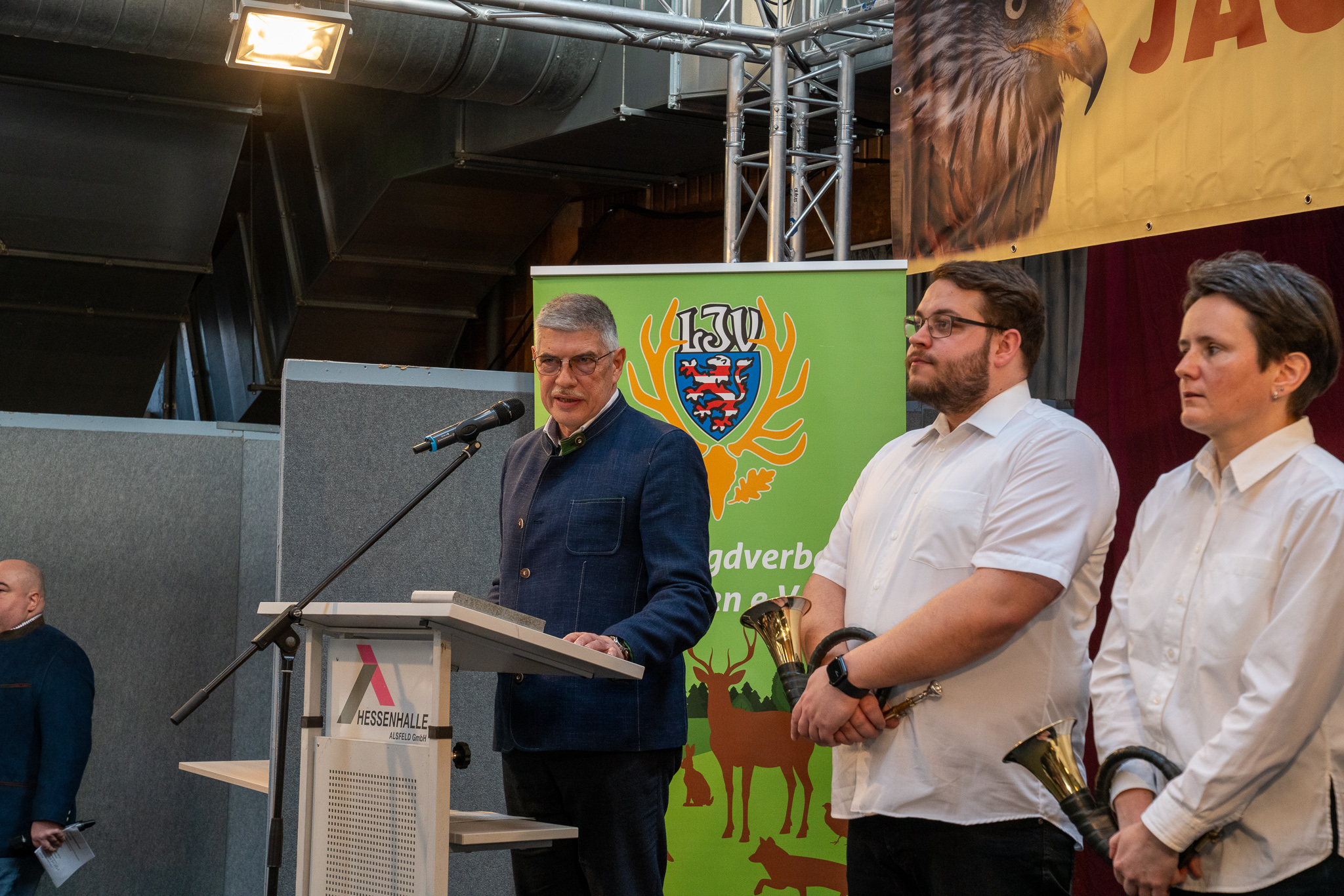Die beliebte Messe „JAGEN FISCHEN OFFROAD“ lockte im Jahr 2024 rund 12.000 Gäste aus nah und fern in die Hessenhalle nach Alsfeld. LJV-Präsident Prof. Dr. Jürgen Ellenberger lobte in seiner Begrüßung den bereits sichtbaren Richtungswechsel in der Landespolitik.