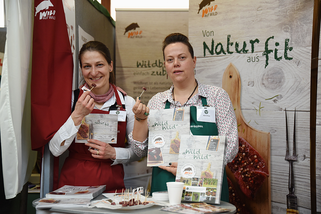 Dr. Anna Martinsohn präsentiert mit ihrer Kollegin die Aktion „Wild auf Wild“ auf der Jagdmesse in Alsfeld. Foto: Markus Stifter