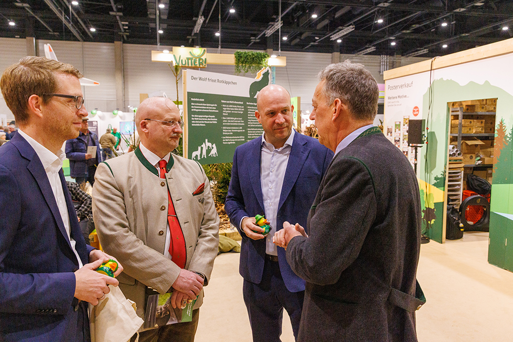 Austausch auf der Grünen Woche in Berlin: Michael Ruhl (CDU), Staatssekretär im Landwirtschaftsministerium, Alexander Michel (LJV-Geschäftsführer), Landwirtschaftsminister Ingmar Jung (CDU) und DJV-Präsident Helmut Dammann-Tamke (von links), Foto: Heinrich/DJV