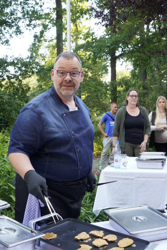 Am Grill servierte Chefkoch Karsten Hepe den Teilnehmern leckere Grillspezialitäten aus eigener Herstellung und verriet seine Rezepte für Marinaden und die Zubereitung von leckerem Wildbret. Foto: Markus Stifter