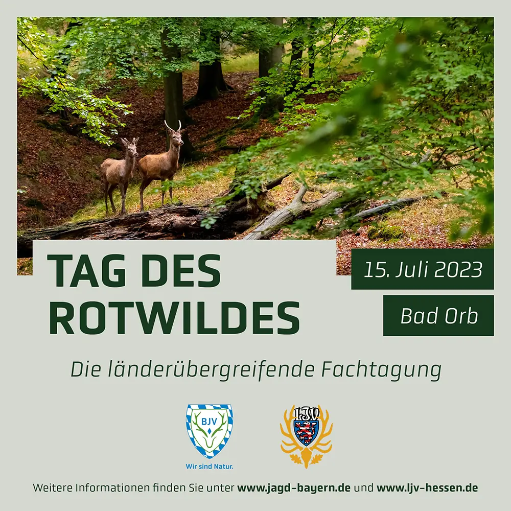 Nun starten wir zusammen mit dem Bayerischen Jagdverband durch, und wollen Sie hierzu ganz herzlich einladen. Die Fachtagung „Tag des Rotwildes“ findet am 15. Juli 2023 in der Konzerthalle Bad Orb (Horststraße 3, 63619 Bad Orb) statt.