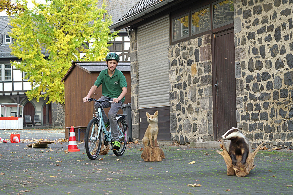 Über einen Fahrrad-Hindernisparcours freuten sich insbesondere die größeren Kinder. Spielerisch konnten sie dabei schon kleinere Wildtierarten wie Fuchs und Hase kennenlernen. Foto: Dr. Nadine Stöveken