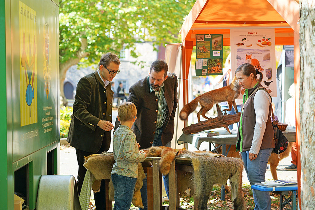 Am Stand vom Jagdverein „Hubertus“ Gießen und Umgebung gingen Eltern und Kinder auf „Tuchfühlung“ mit den heimischen Wildtieren. Foto: Dr. Nadine Stöveken