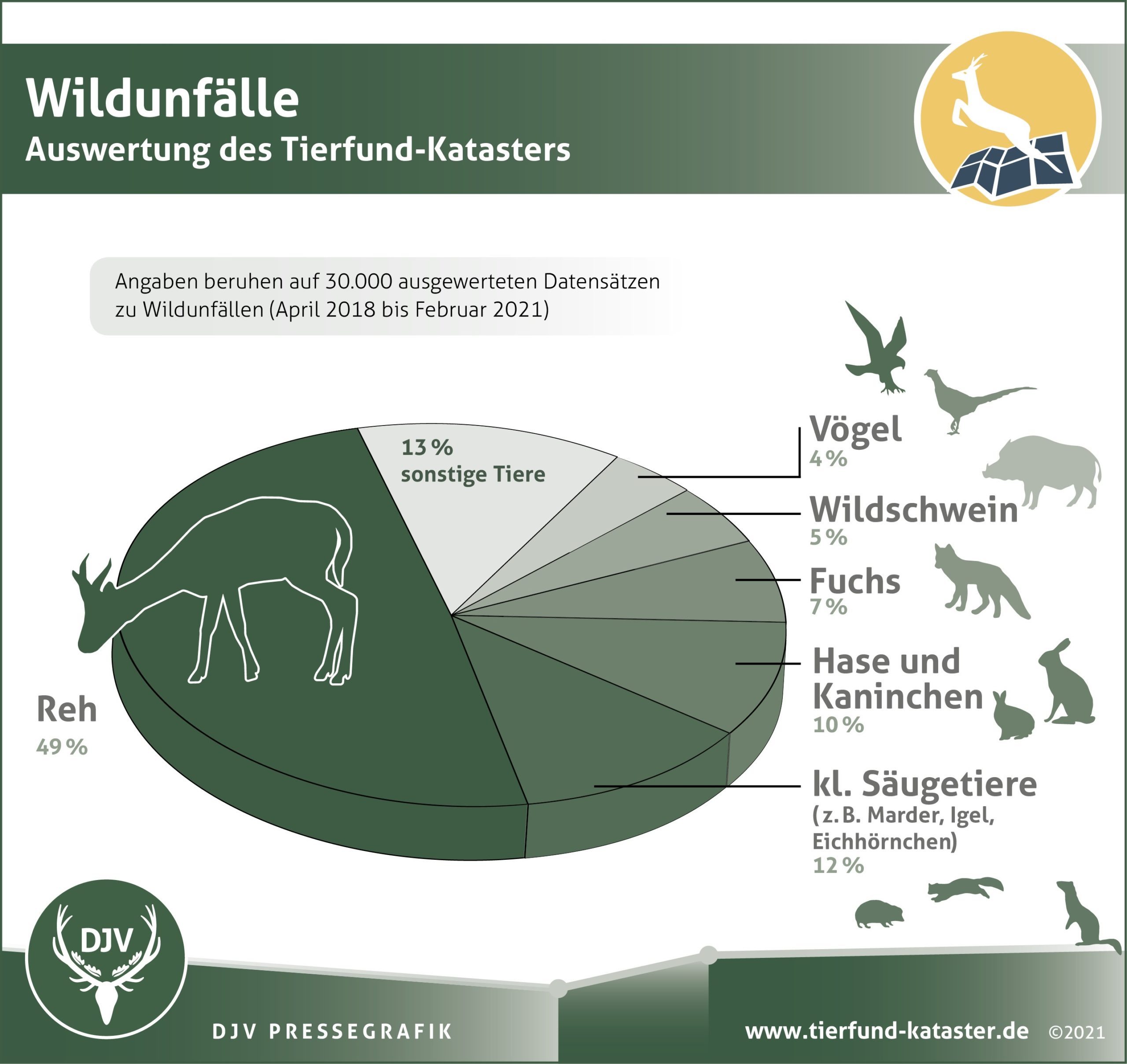 Pressegrafik: Wildunfälle in Deutschland von April 2018 bis Februar 2021, Quelle: DJV